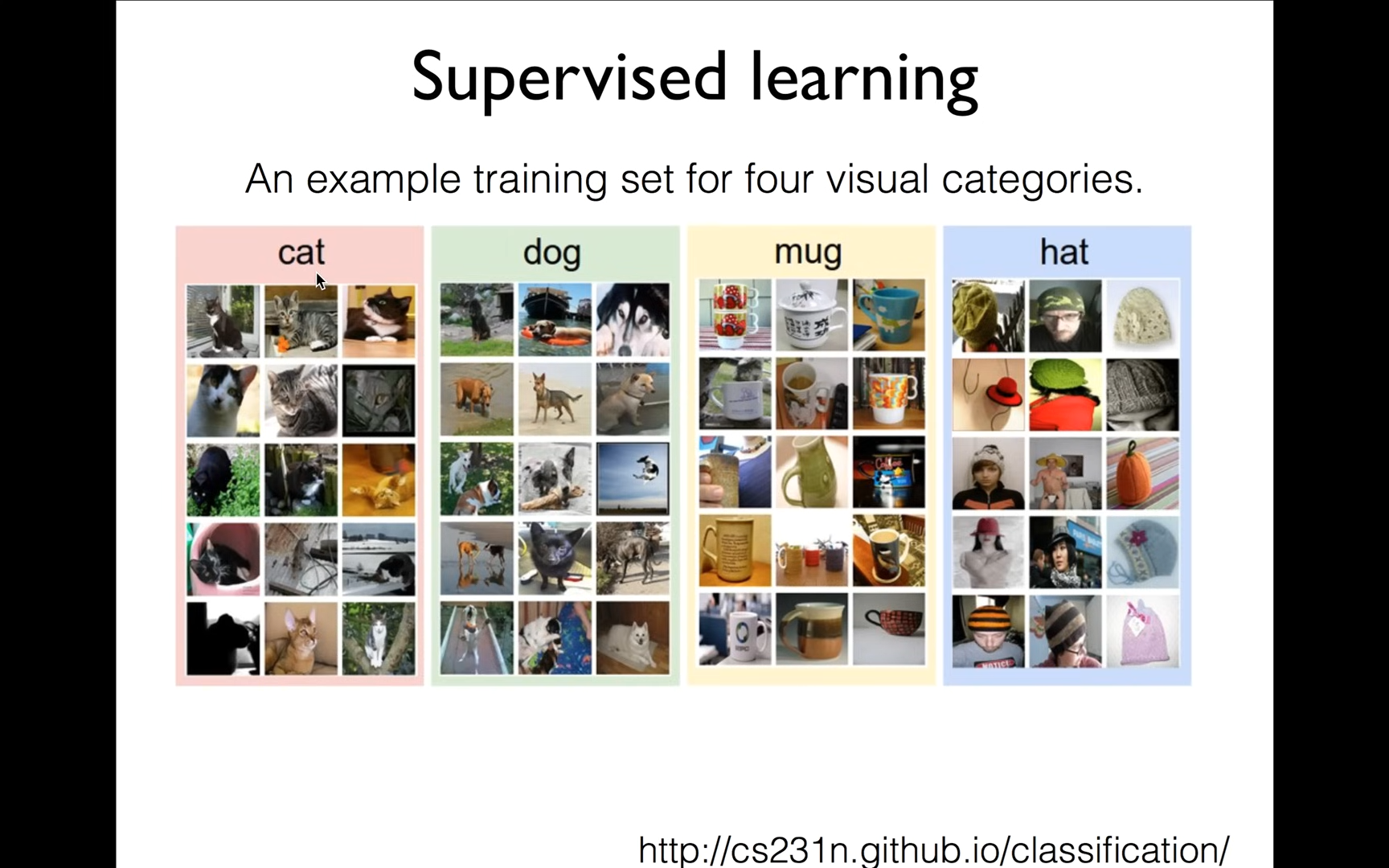 사람이 기계에서 'cat'이라는 라벨링 된 데이터를 준다.