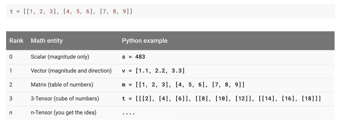 1, 2, ... n 차원 array라고 하는데 이를 tensorflow에서 Rank라고 한다.