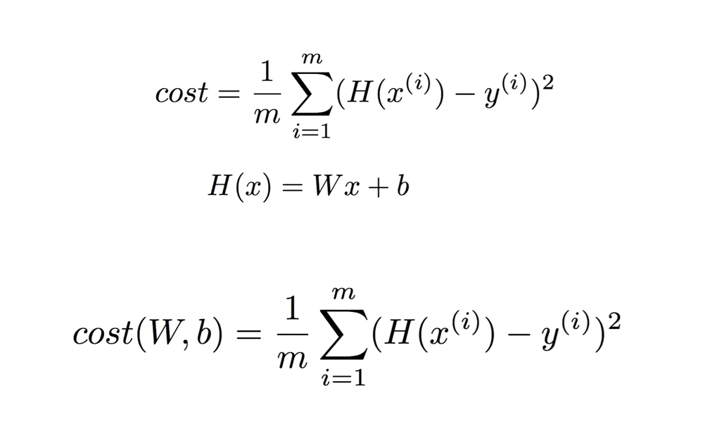 cost를 가장 작게 만드는 W,b를 구하는 것이 최종 목표이다.