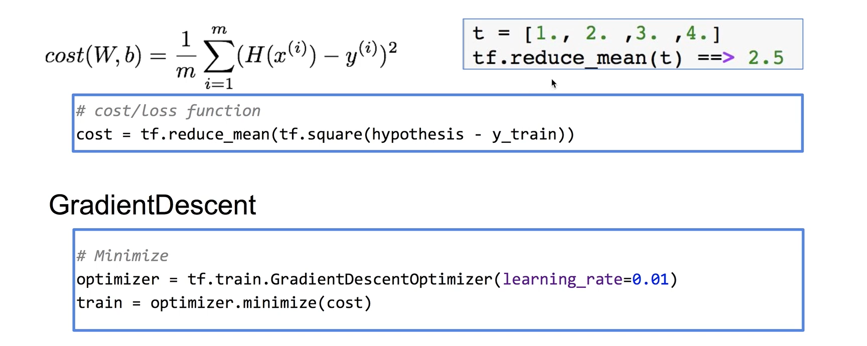 train = tf.train.GradientDescentOptimizer(learning_rate=0.01).minimize(cost)