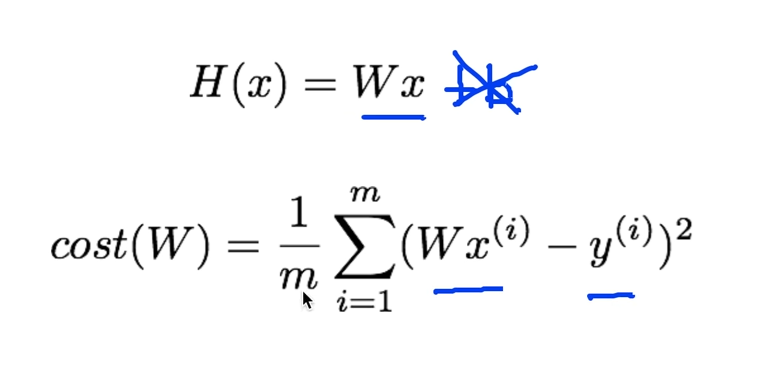 simplified 모델은 위와 같고, 결국에는 cost functino을 최소화 하는 W를 구하는게 목표이다.