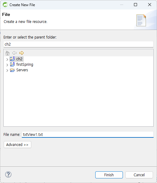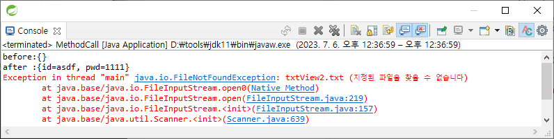 실행하면 txtView2.txt 파일이 없어 에러가 발생한다.
