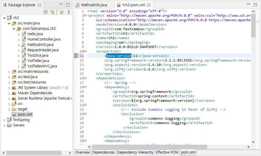 pom.xml파일의 java-version을 1.6에서 11로 바꿔주고,