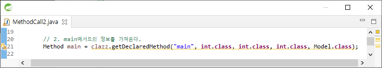 생성한 객체의 main메서드 정보를 가져온다. 이름이 main인 메서드가 오버로드 되어있을 수 있으므로 변수를 모두 적어줘야 한다.