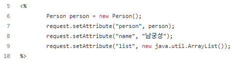 person 객체는 lv이므로 ${lv} 쓸 수 없다. 따라서 request 객체에 저장하고 꺼내써야 한다. request 객체에 Attribute를 가진 Map이 있다.