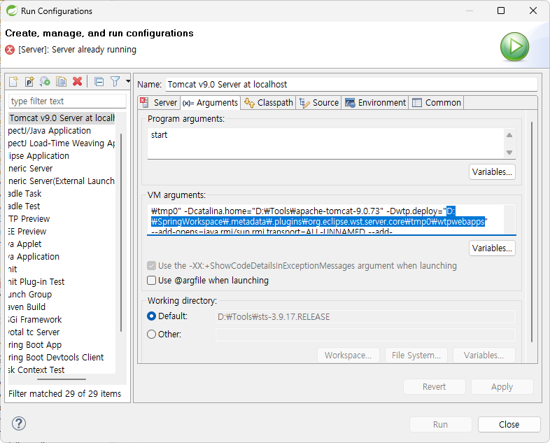 변환된 java 파일을 보자. Run configuration의 Arguments에서 deploy 경로를 복사한다.