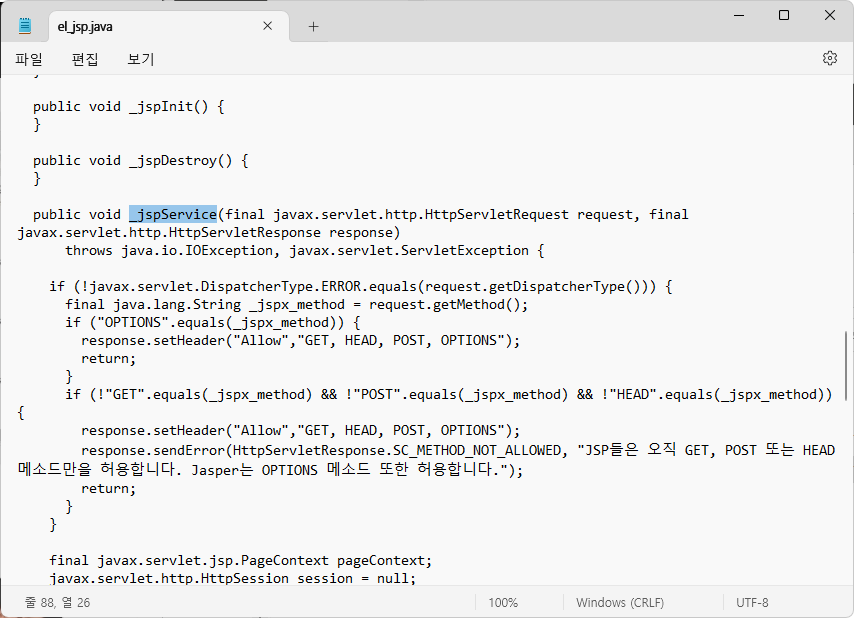 _jspService가 핵심 부분이다.