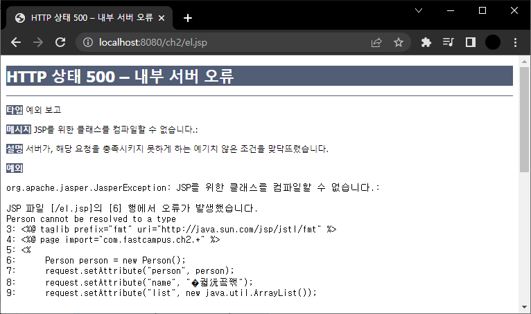 이렇게 Map형태로 담아줘야 한다. person 객체가 lv이기 때문에 객체를 생성하고 담아주지 않으면 EL을 쓰지 못한다.