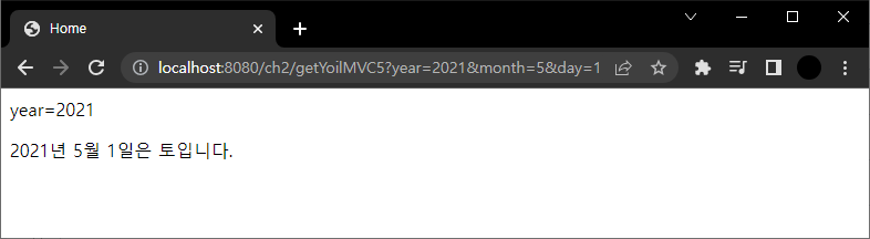 컨트롤러 메서드를 url로 호출했을 때, Query String의 data가 map 형태로 구성된다. 이 값이 컨트롤러 메서드에 전달될 때 값을 받는 매개 변수 타입이 MyDate이다.