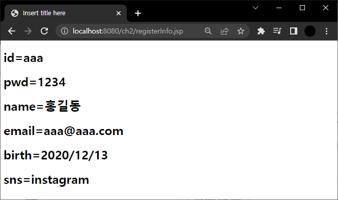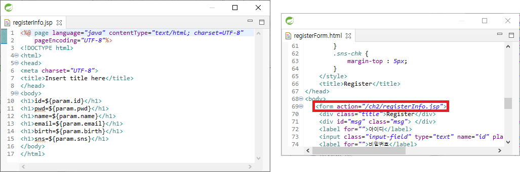 registerInfo.jsp를 만들고 html에 form 태그에 action="/ch2/registerInfo.jsp"를 추가한다.