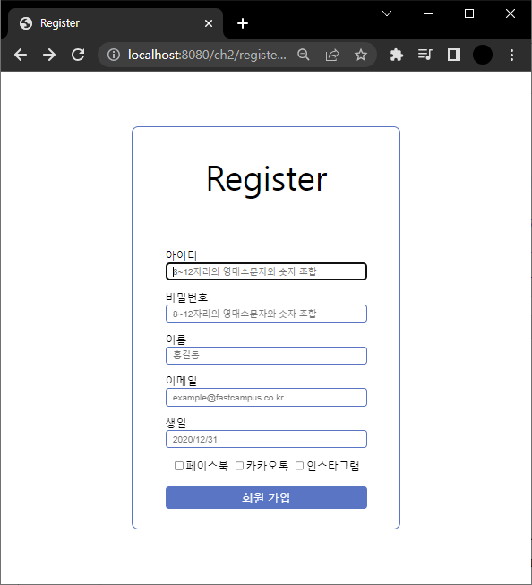 registerForm.html : https://github.com/castello/spring_basic/blob/main/ch2/registerForm.html