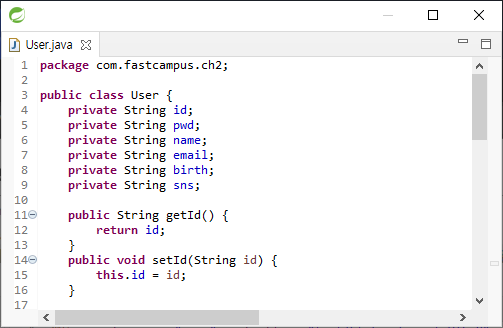 User 클래스에 getter setter를 만든다.