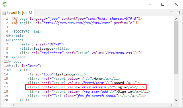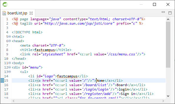 1. index.jsp(홈 화면)에서 Board(게시판)을 클릭하면 URL "/board/list"로 요청을 한다.