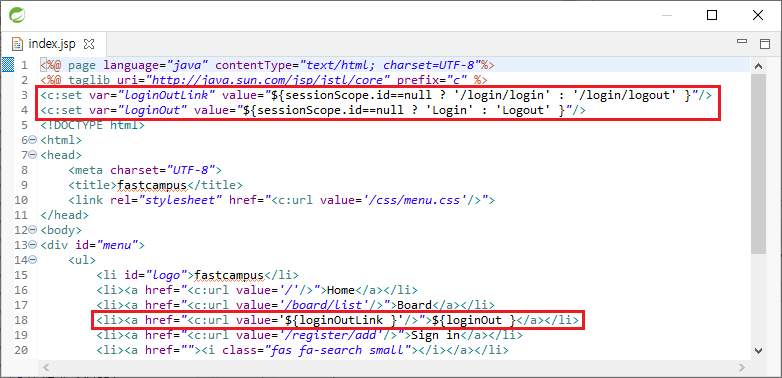 코드를 바꾸면 로그인 했을 시 로그아웃이 출력된다.