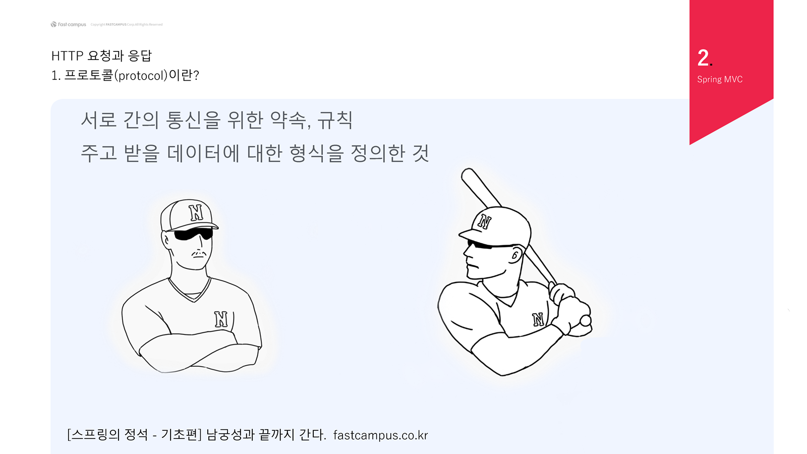 컴퓨터에서 말하는 protocol은 '주고받을 데이터에 대한 형식을 정의한 문서'이다. 데이터를 어떻게 주고받을지 약속하지 않으면 데이터가 어디서부터 어디까지인지 혹은 어떤 내용인지 해석할 수 없다. 따라서 데이터를 주고받을 때 필요한 서로 간의 약속이 쓰인 문서가 있어야 한다.