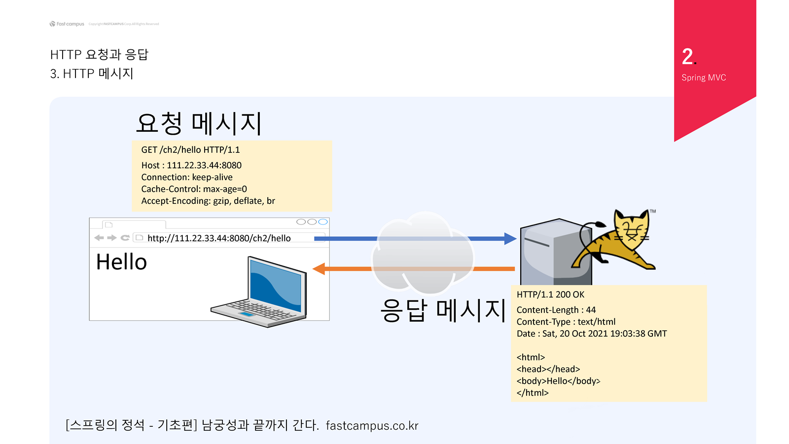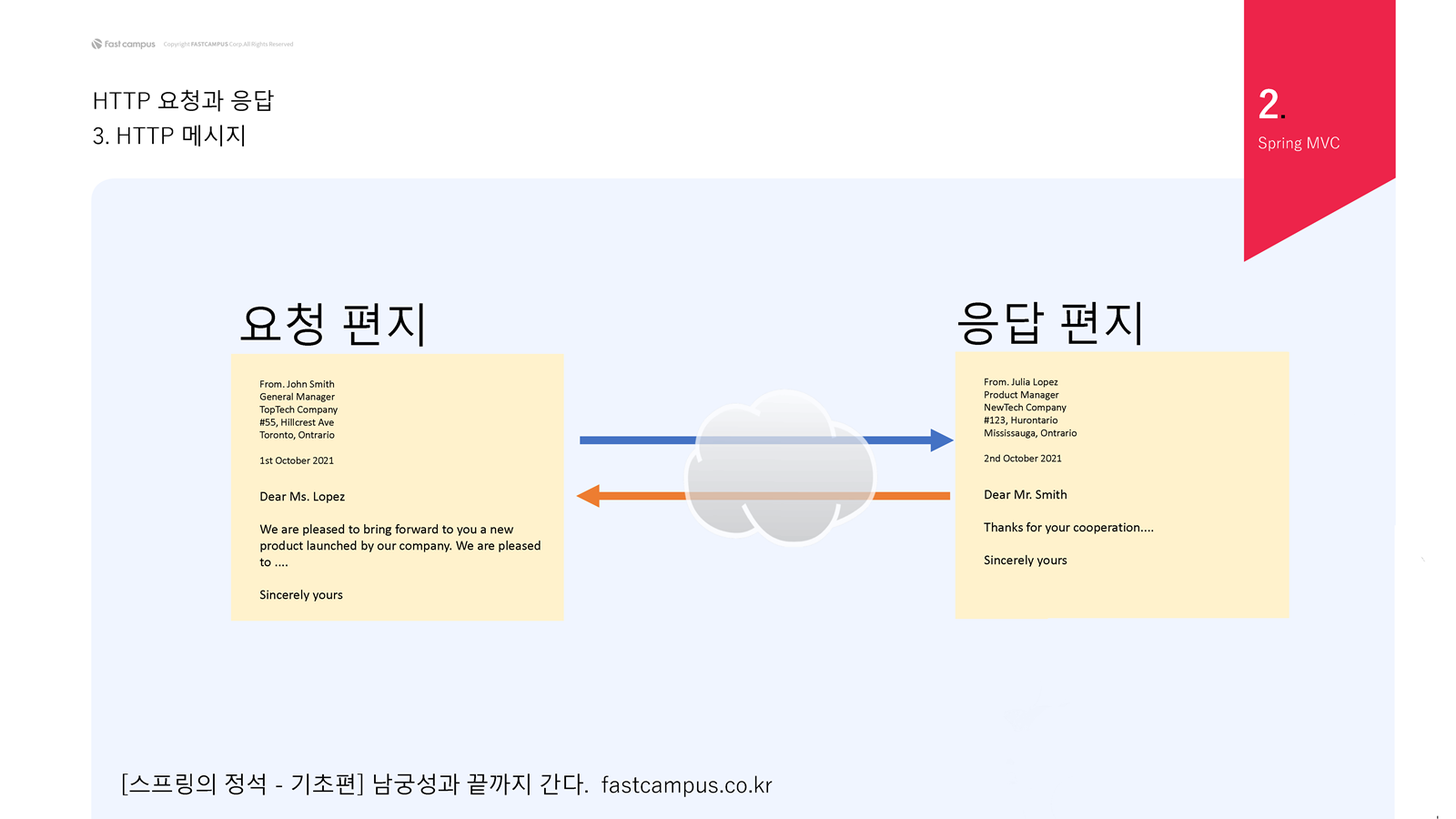 HTTP 메세지는 서로에게 요청 편지(헤더+바디)를 보내고, 응답 편지(헤더+바디)를 보내는 것이다.