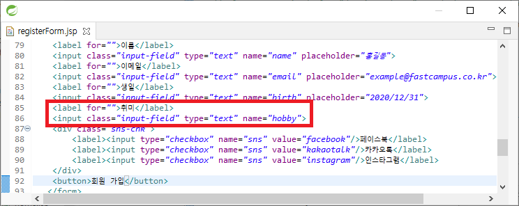 registerForm에 취미 항목을 만든다.
