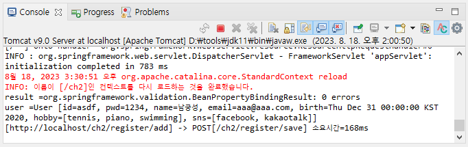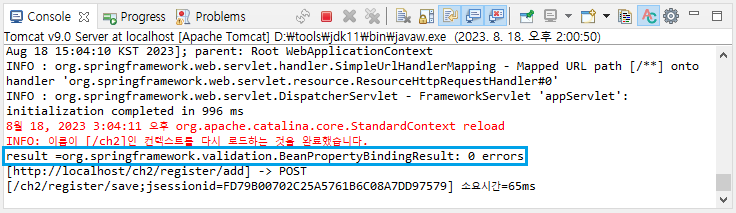 BindingResult를 추가하는데 위치는 User 바로 다음에 와야한다.