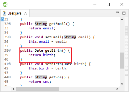 User의 String birth를 Date birth로 일괄 고친다. import는 "java.util.Date"로 한다.