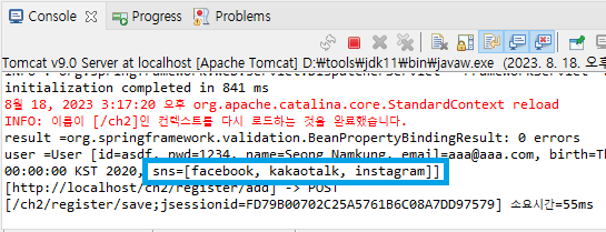 sns에 배열로 잘 넘어오긴했다. jsp 바꾸자.