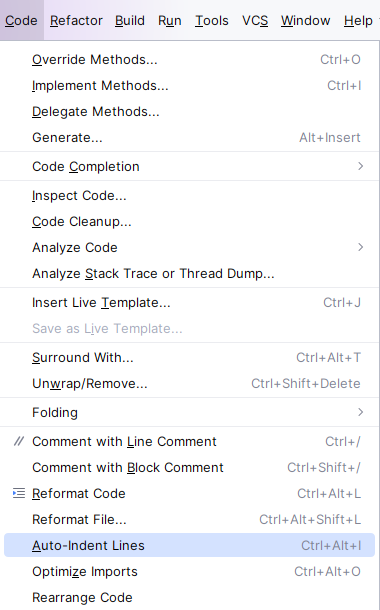 들여쓰기 자동 정렬 : Ctrl+Alt+I