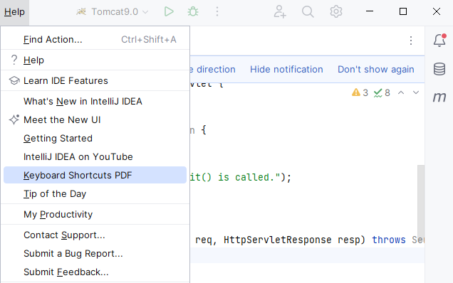 Help - Keyboard Shortcuts PDF를 클릭하면