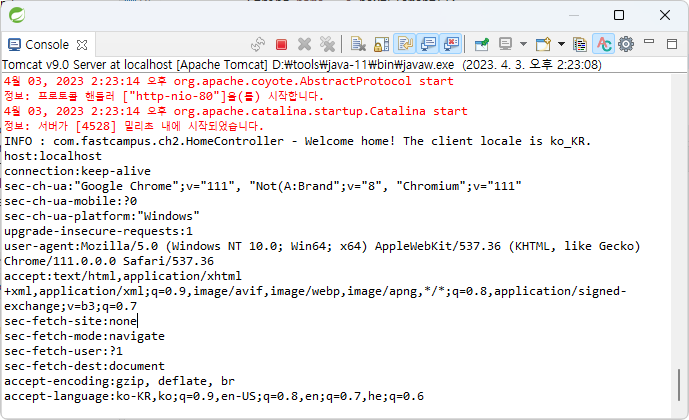 - RequestHeader 메서드(Header를 전부 출력하는 메서드)