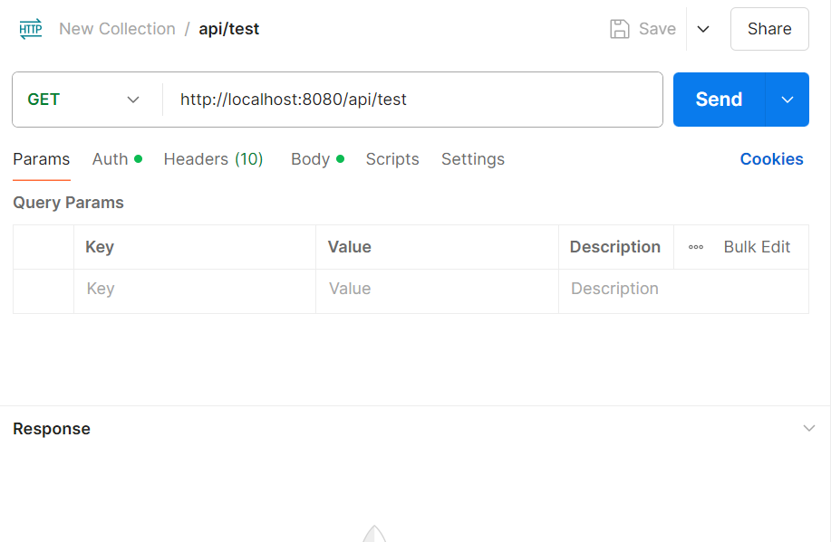 회원 가입 후 '/api/test' 다른 url로 변경하고 send버튼을 눌러 request를 요청했다. -> 당연히 백엔드 컨트롤러가 작성되어 있어야 한다.