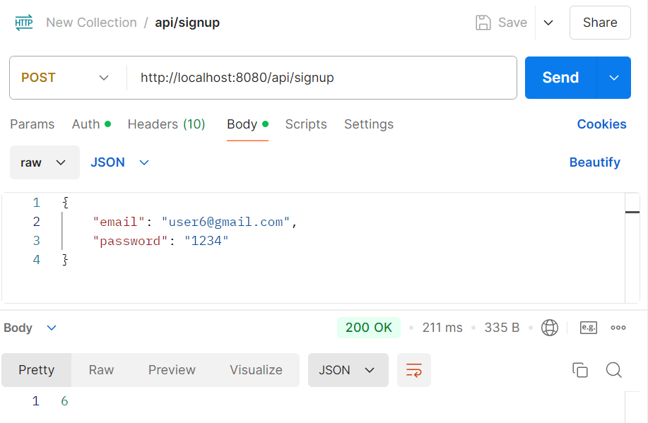 - 'http://localhost:8080/api/signup'에서 내가 만든 회원가입 API를 통해 ID와 비밀번호가 DB에 저장된다.