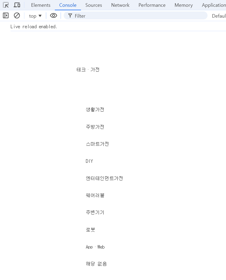 <body> 태그 안에 다 때려넣고 라이브 서버 실행하면 브라우저 console에 텍스트만 남는다.