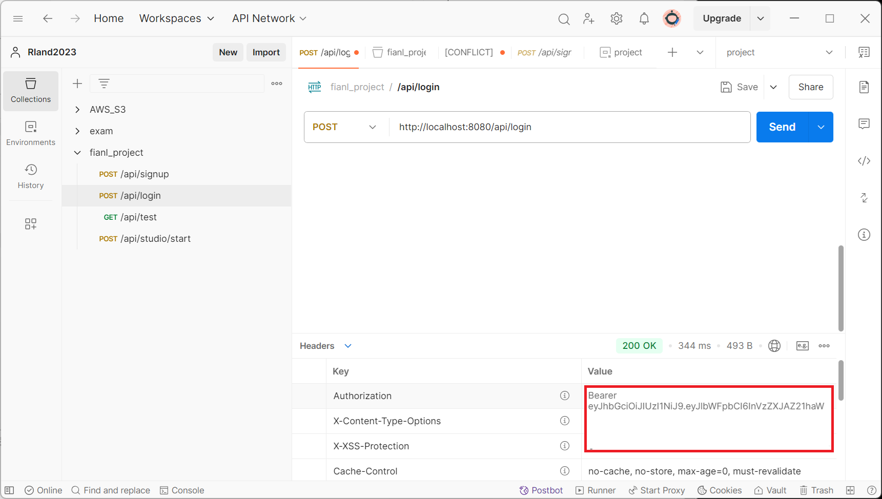 login에서 발행된 토큰이 자동으로 들어간 것을 확인할 수 있다.