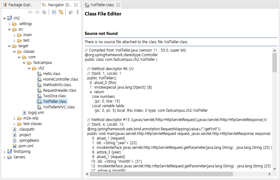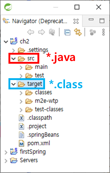 windows - show view - others에 들어가서 navigator를 검색한다. navigator는 탐색기같은 거라 source, class파일 둘 다 볼 수 있다.